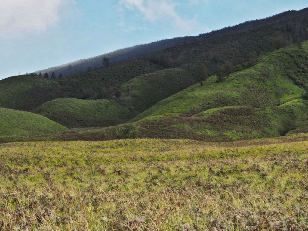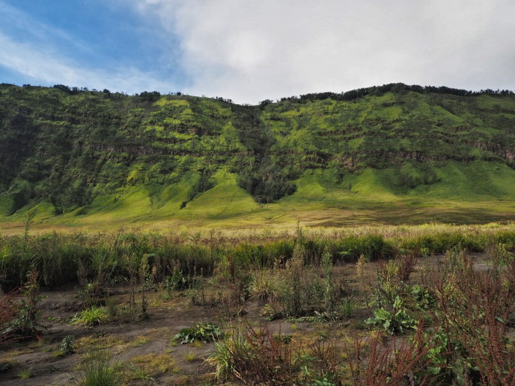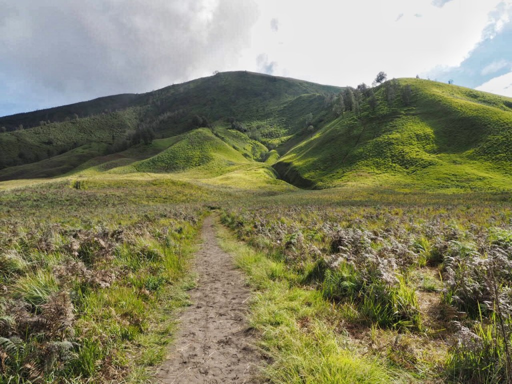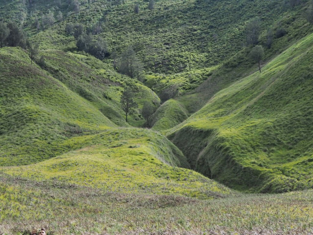Finally, we made a quick trip to the savannah on the back side of Bromo. It was intensely green unlike the ash wasteland of the Sand Sea. The driver pointed out that the green hill in the foreground is known as Teletubbie hill because it looks like a hill on the kids show. We really didn’t see the similarity, but there was a giant flaming baby head laughing down at us.