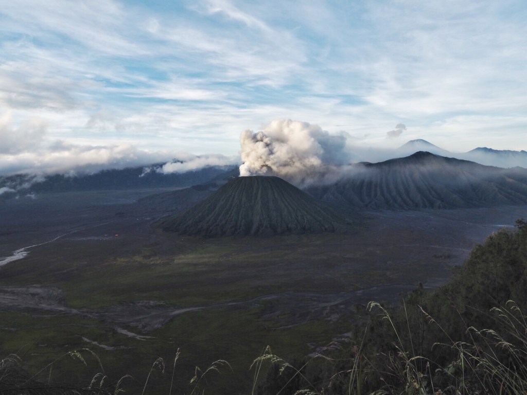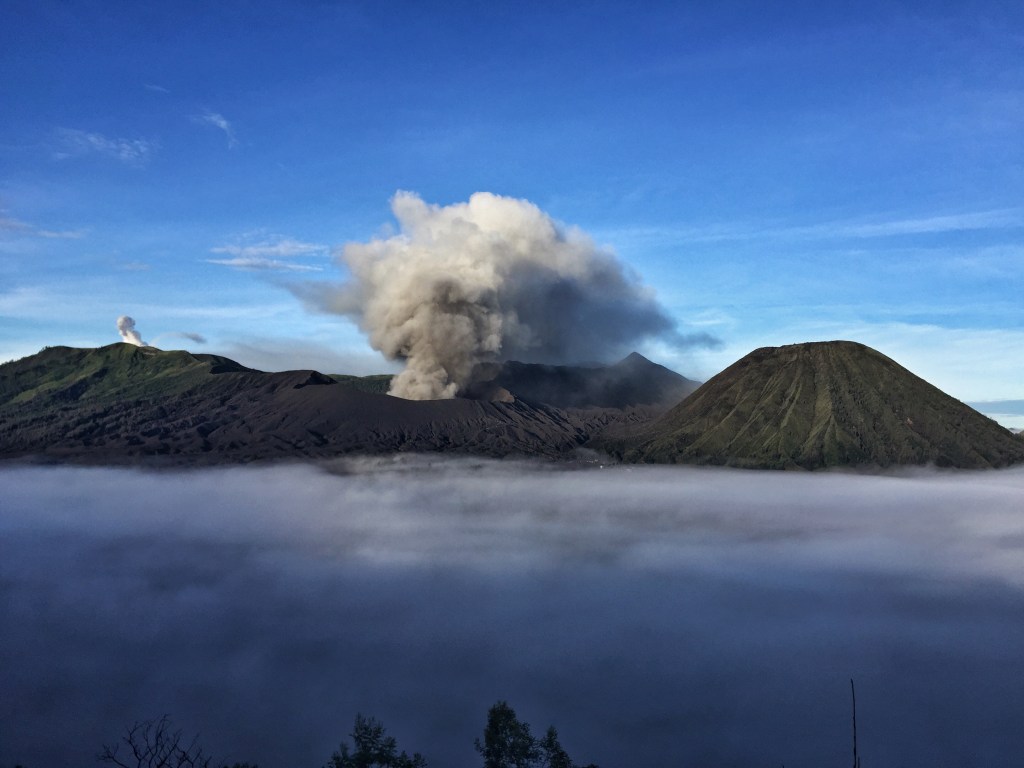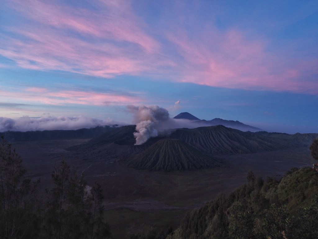 The morning after was beautiful, as if none of the previous night’s weather had ever happened. We took a stroll up the main drag and were hit in the face with an incredible view of Gunung Bromo and its sibling volcanoes rising above a foggy valley. They were larger than life with Bromo adding a constant plume of steam. The fog dissipated by 7am but clouds returned at sunset to give us surreal views to end the day.