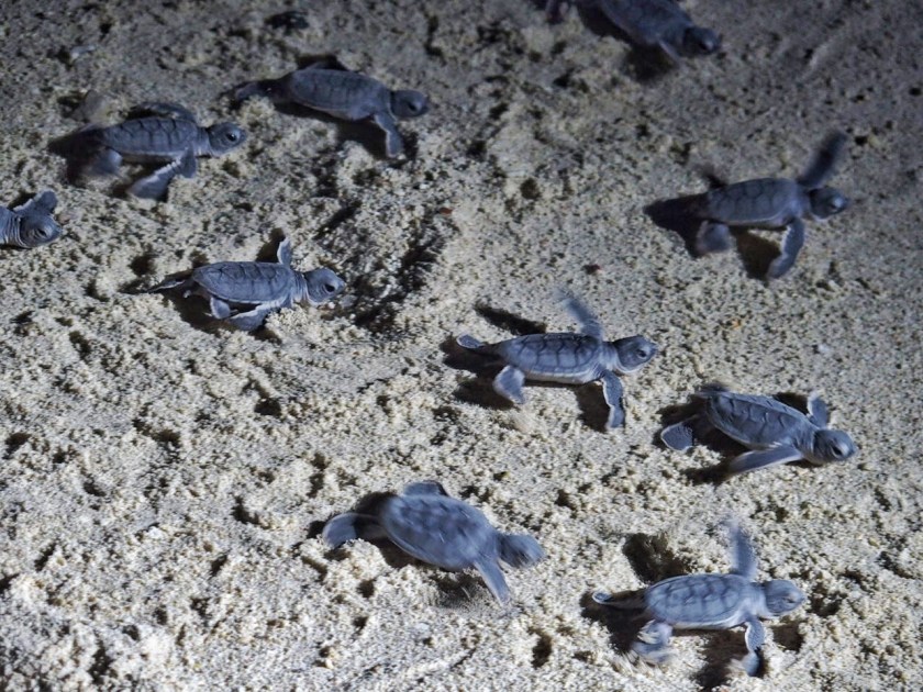 Finally, we followed the rangers to another section of beach and watched as they released a bunch of newly hatched babies 10 feet from the water and let them earn their freedom through the voracious army of tourists. The cuteness was off the charts. All the babies made it safely to the ocean and disappeared into an unknown future.