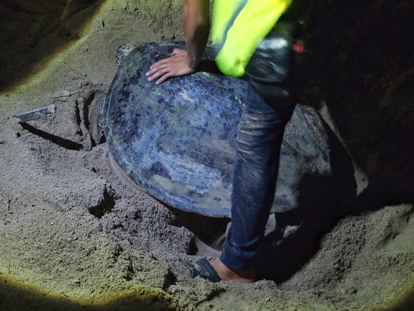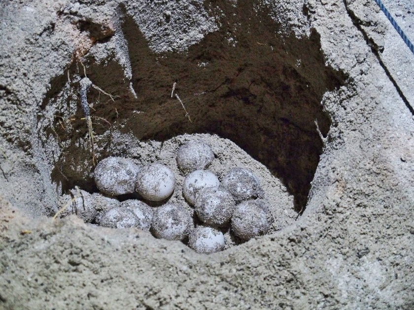 That night 35 green turtles and 1 hawksbill came on shore to lay their eggs. There were 2,646 green turtles eggs and 124 hawksbill eggs laid plus 215 hatchlings released. Overall a successful night for turtle conservation.