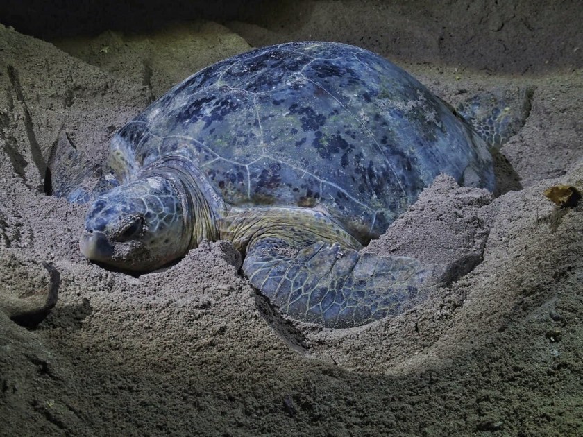Next morning we were on a speed boat to Selingan Turtle Island, one of three islands that make up Turtle Islands National Marine Park where green and hawksbill turtles come on shore to lay their eggs. The park was established to protect the turtles and their nesting habitat. We were spending the night there to learn about the conservation programs and to witness turtles laying their eggs.
