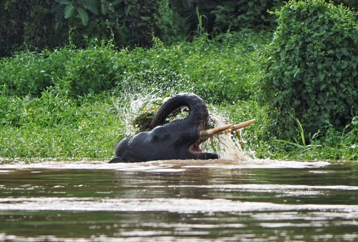 We stayed for a while fascinated as we watched the spectacle of elephants roaming, socializing and playing in the river.  We even saw a baby pygmy suckling.