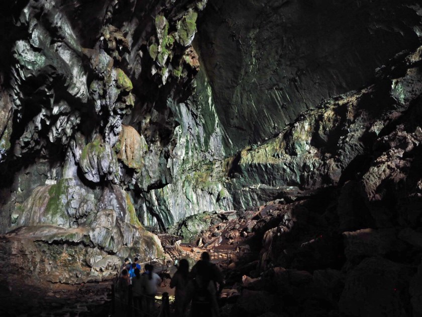 We started out by taking the tour to Lang Cave and Deer Cave which are adjacent to each other. Along the way to the entrances we saw a range of creepy crawling animals: walking stick insects (or maybe they are branches. Can’t tell) a really cool looking lantern bug, a hammerhead worm and a small Bornean pit viper coiled on a tree branch.