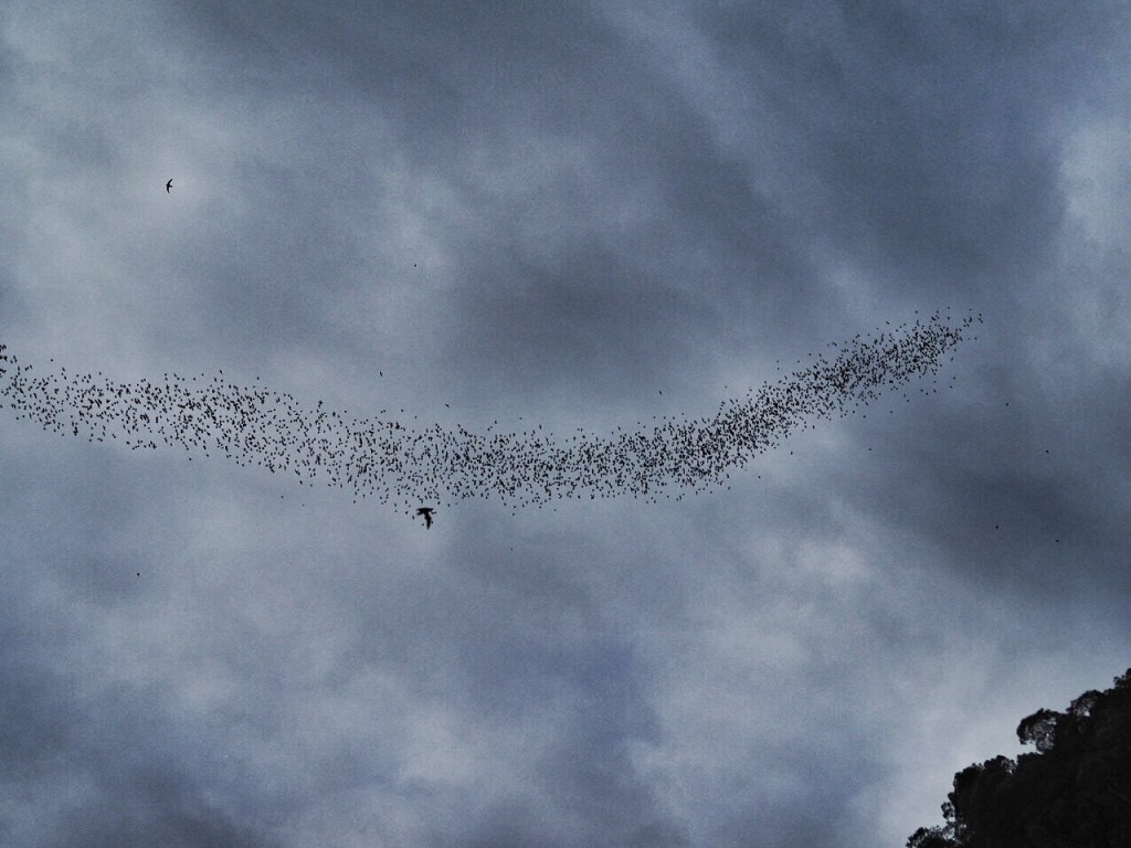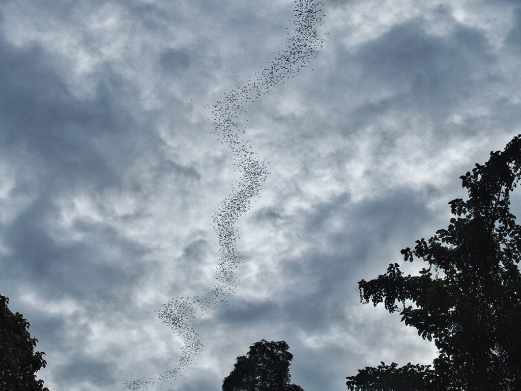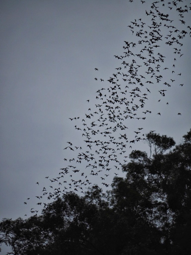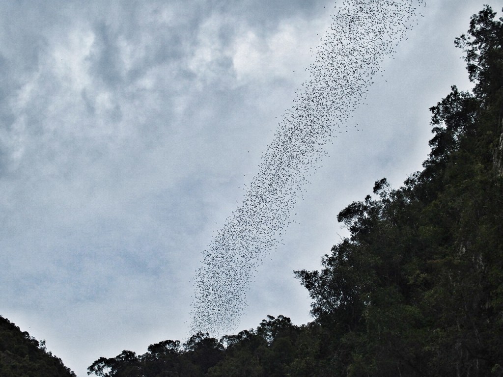 But it’s the bat exodus that we all wanted to see. We were herded into the bat observatory and waited for the bats to start their exit. Right on queue bats began leaving Deer Cave singly, then in groups and finally in a torrent. As they flew out they formed an undulating stream that slithered and curled like a gigantic snake made up of thousands of bats. It was such an awesome sight to see millions of bats twirling through the skies.