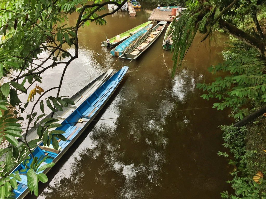 The next day we took a longboat to Cave of the Winds and Clearwater caves. We stopped off at a local village where we all got to shoot a blow gun. None of us hit the target. After our humiliating showing, we left the village and continued to the caves.