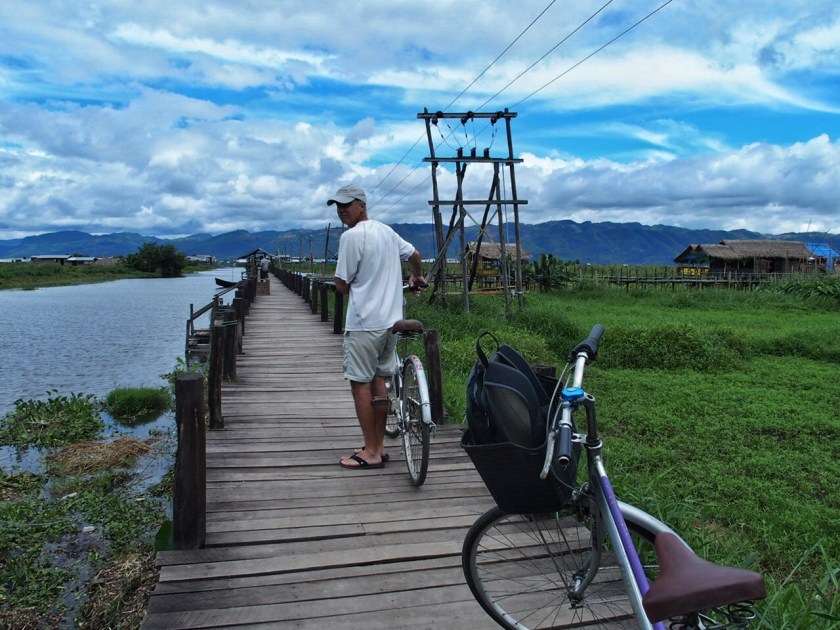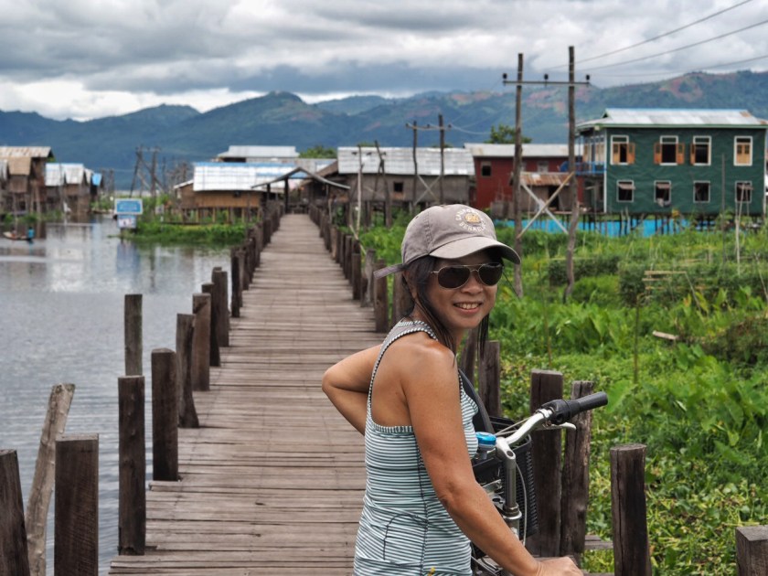 Half of the village of Maing Thauk is on land and other half is on water. We disembarked from on our bikes to cross the long wooden bridge that connects the two halves together.