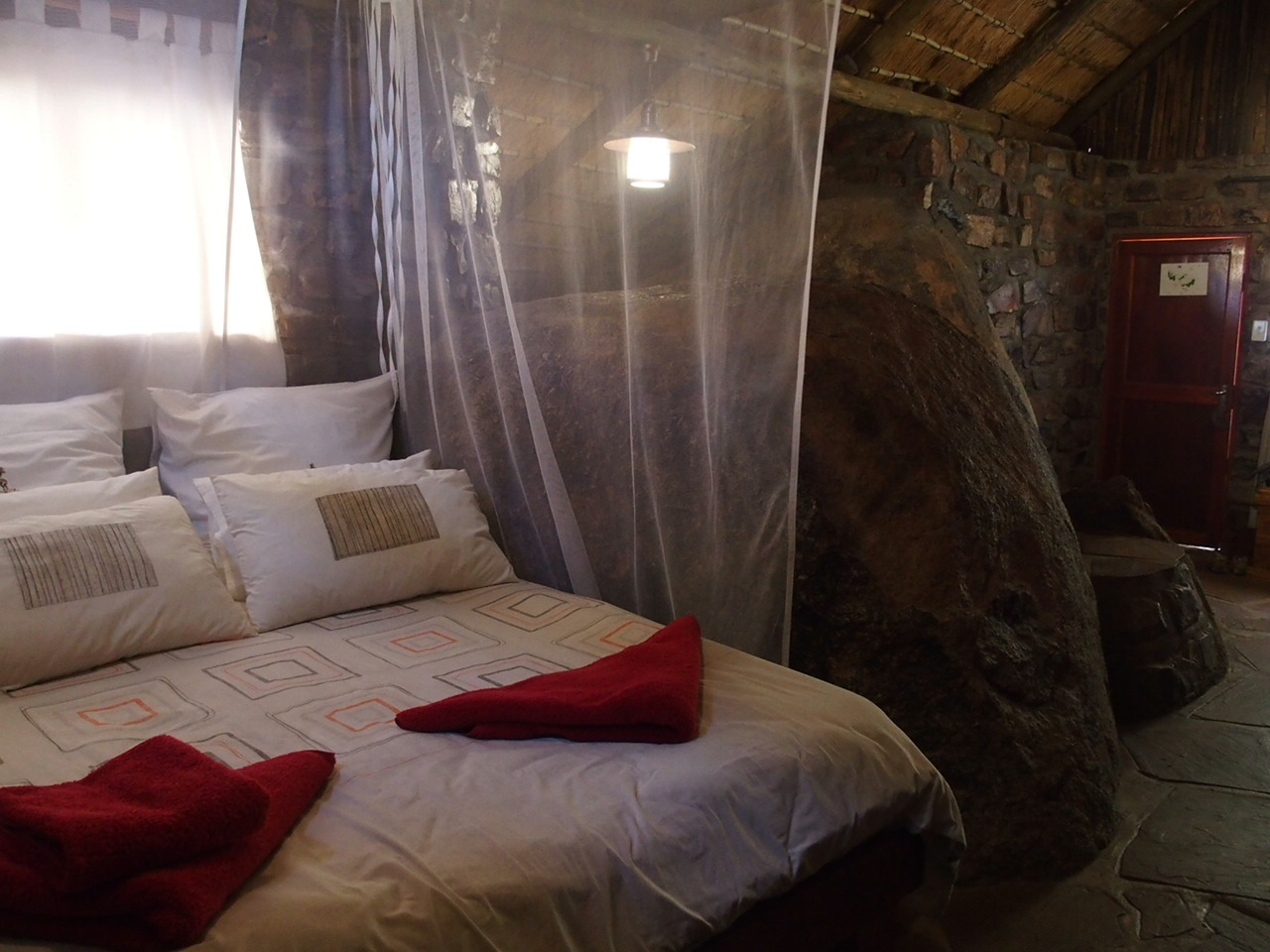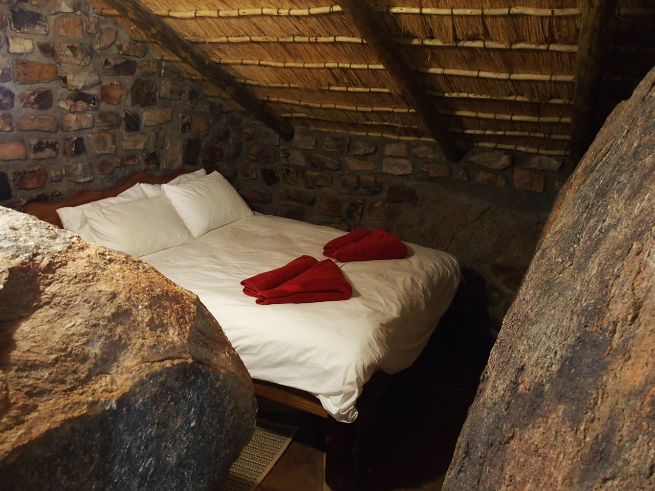 This time we we were staying in a lodge while at Fish River Canyon. When we arrived at our accommodations, we were surprised to find that our rooms were actually individual stone chalets that were built into the native dolorite landscape. It was like sleeping in a cave, though a very fancy cave. Clearly this place was something we would normally not book on our own. This is what happens when you leave the planning to someone else. At least Kim was happy with the choice.