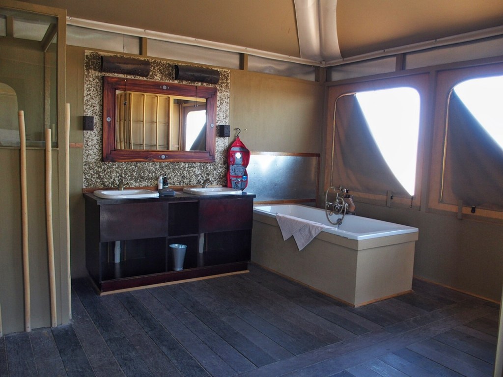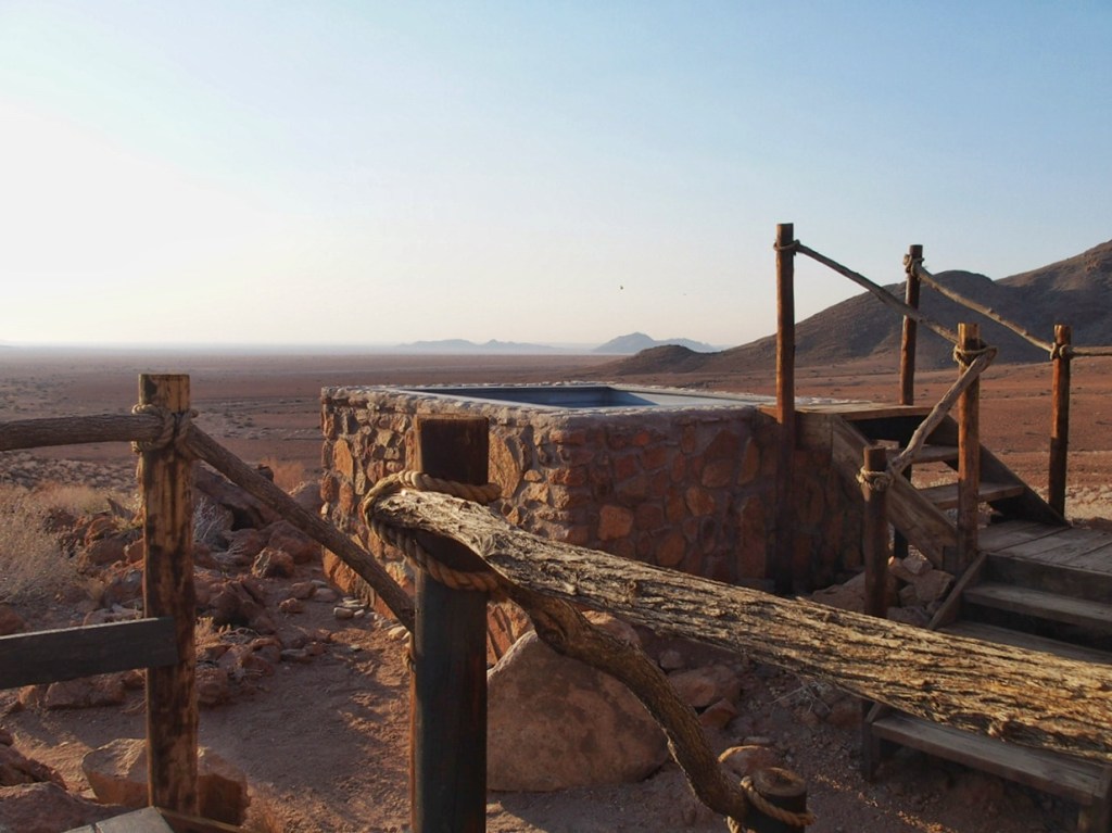 After leaving the Hideout we stopped over at Sesriem to fuel up and to have some awesome meat pies before stopping at Moon Mountain Lodge, our accommodations for the night. This wasn’t just any ole lodge but rather ultra luxirious tents each with it’s own mini swimming pool. Think hot tub but with cold water, a perfect complement to the dry furnace of mid day. Yet another place we would not have booked on our own.