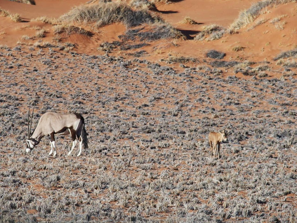 We saw the ubiquitious oryx (seriously they are everywhere!), baby oryx (no wonder they keep breeding), plains zebras, springbok and karhaans (some bird). We wanted to see the bat-eared foxes, a species of fox named for its ears. These animals are nocturnal and was told that the best place to see them was on the road leading out to the entrance, but no such luck.
