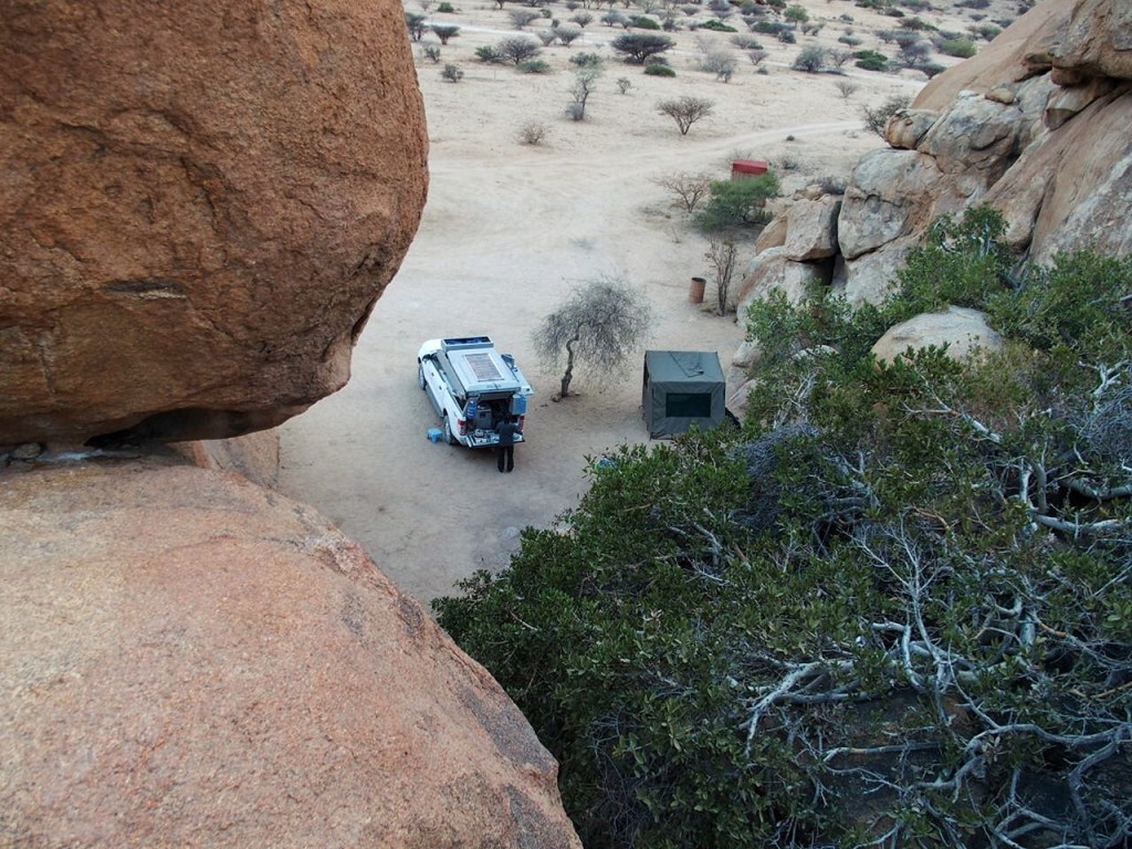 Once we reached Spitzkoppe, we signed up for a bushman painting tour that afternoon and set up camp. Spitzkoppe is the name of the main granite peak in the park. Our guide gave us a brief intro and history of the area before launching into a quick lesson on the Damara click language. We all took turns botching our attempts to mimic the clicks and pronunciations of even the simplest phrases.