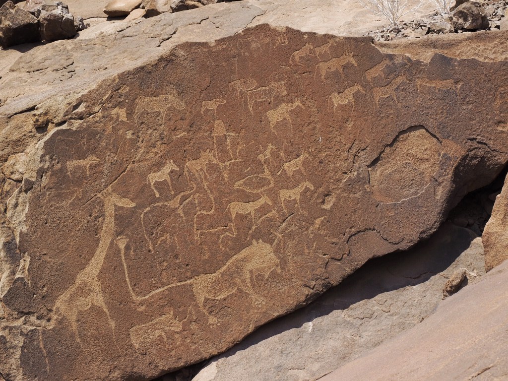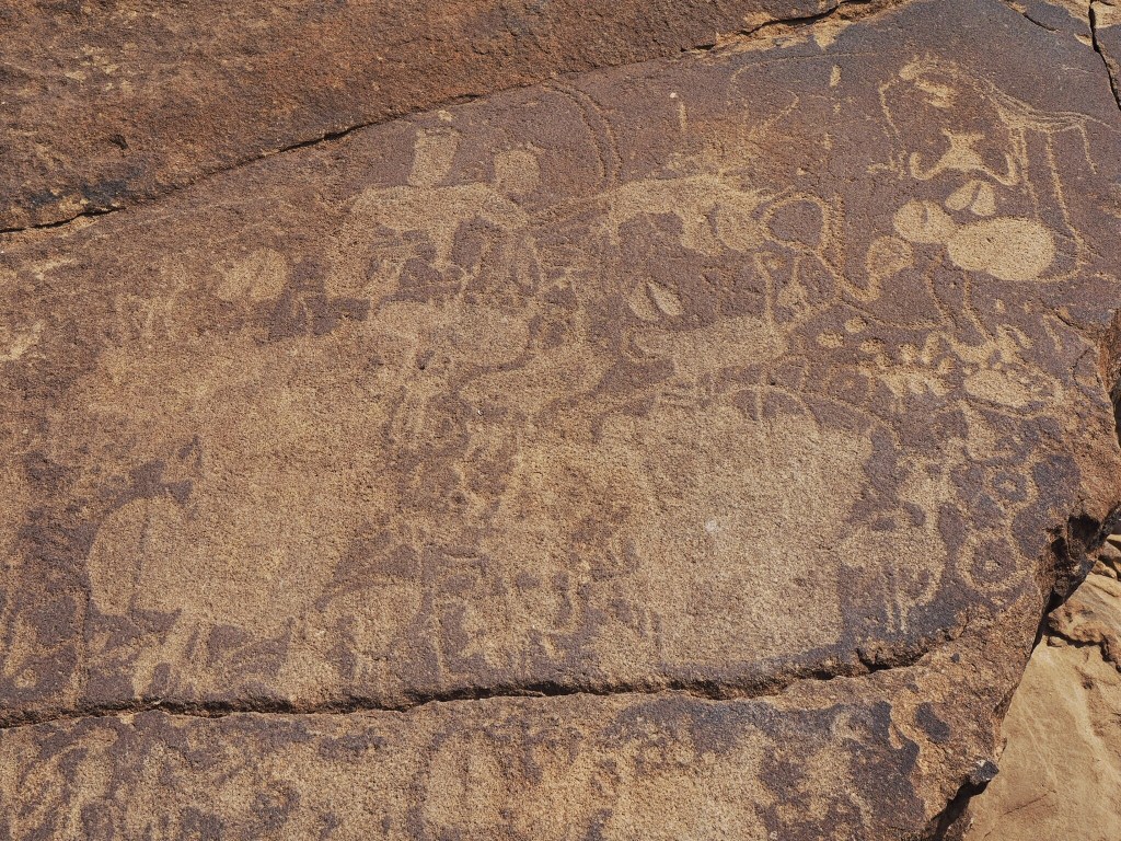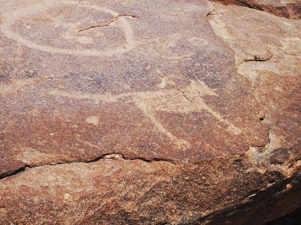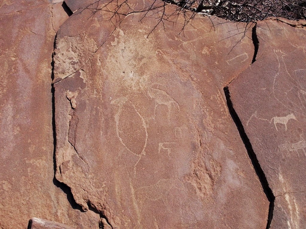 We went on the Lion Man route which lasted 45 minutes and showed us a good selection of etchings. The local geography is sandstone with some parts covered by desert varnish similar to what was used as canvas for petroglyphs in the US southwest.