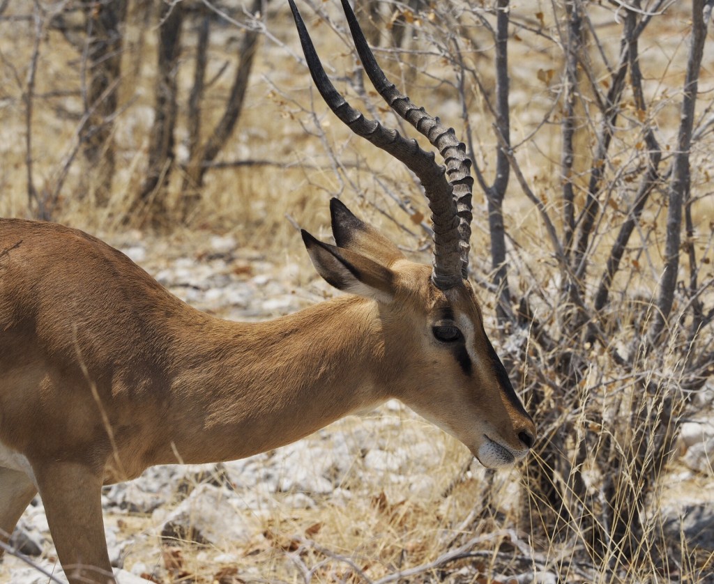 Black-faced impala along Rhino Drive. These animals are only found in Etosha and are considered endangered. We did not see any rhinos on Rhino Drive. Go figure.