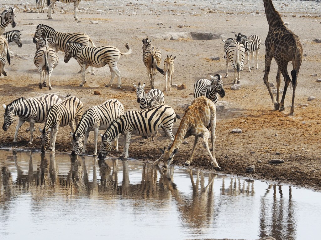 On the second night in Halali, a lone zebra taking a drink almost becoming a meal as the mother lion hidden in the bush made an attack. Cubs chasing banded mongooses and birds.