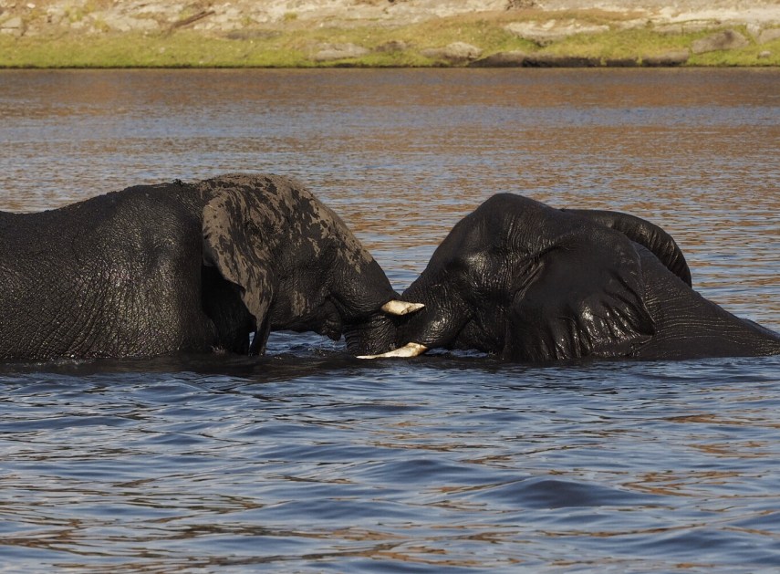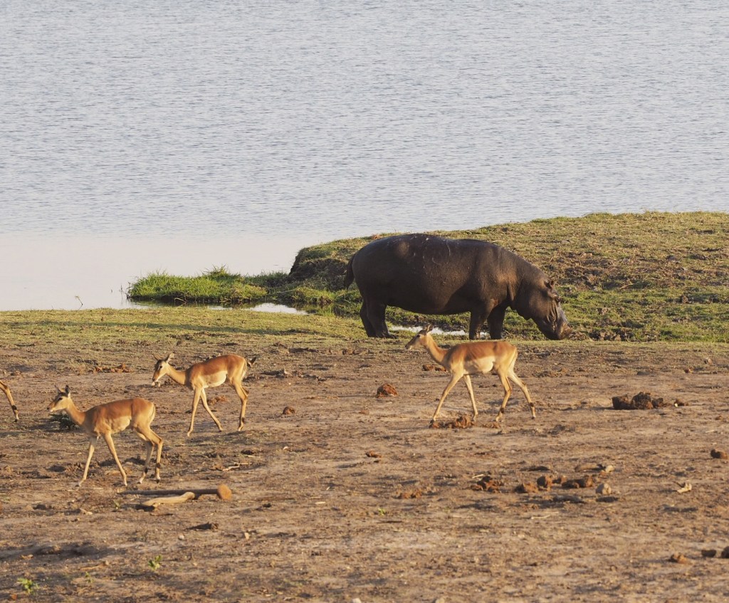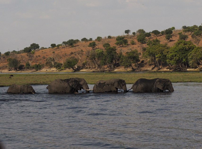 And unlike the intimate experience of the Okavango Delta, the Chobe river gets crowded with convoy of safari jeeps and river boats clogging its roads and riverbanks. On land and water there were groups of up to 5 vehicles or 10 boats jockeying for position to watch animals. We were herded onto safari boats that were 60-person river cruisers and game drive vehicles that seated 10. Yep lot more people here. Still, it didn’t make any real difference thanks to the abundance and variety of animals there.