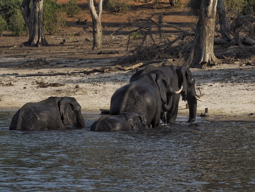 - It was interesting to watch a small herd hesitate to enter the water and having the matriarch go in first, splash around and holler at the rest to follow.