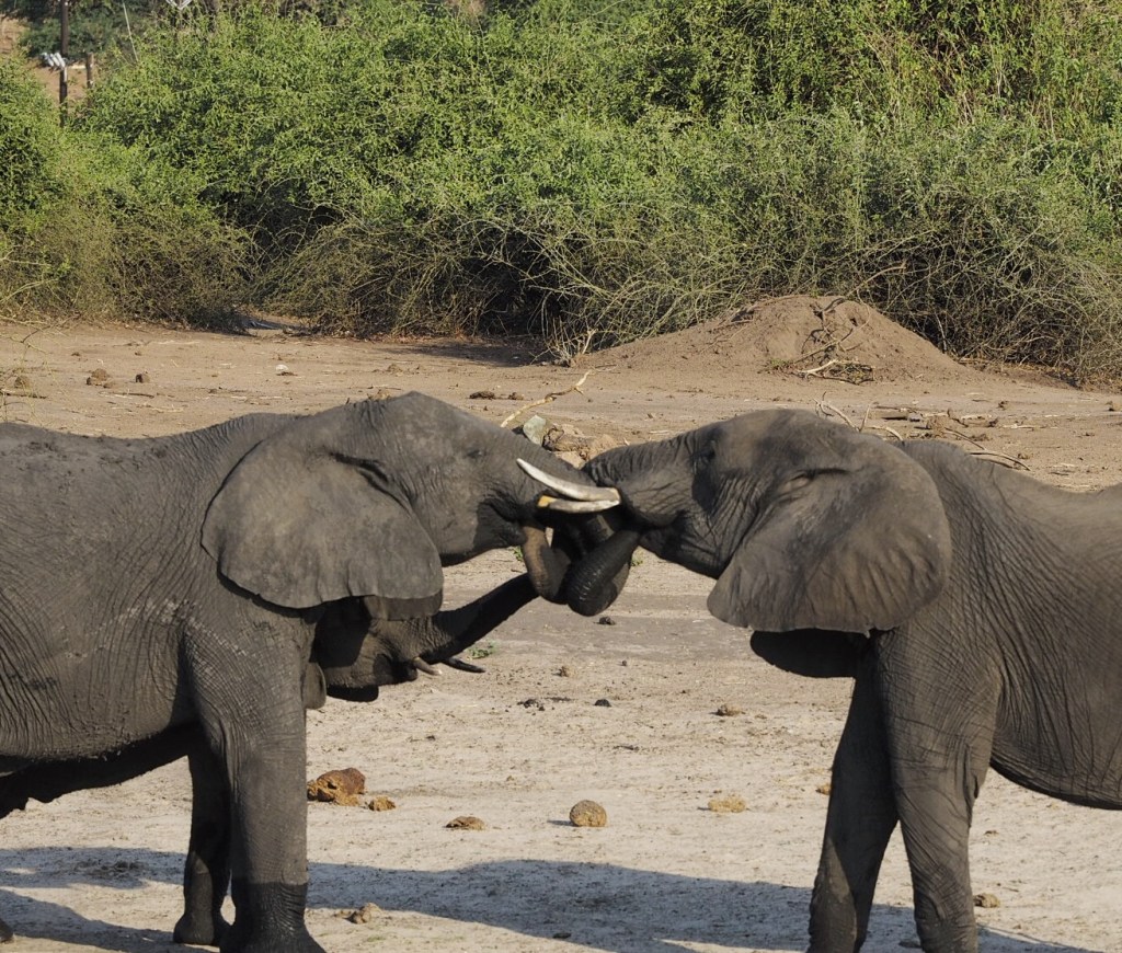 - Groups of elephants doing what looked like a four-legged moonwalk, stirring up dirt and moving grass around. Apparently it helps them pick and bundle the grass for easy grabbing with their trunks. Pretty sharp.