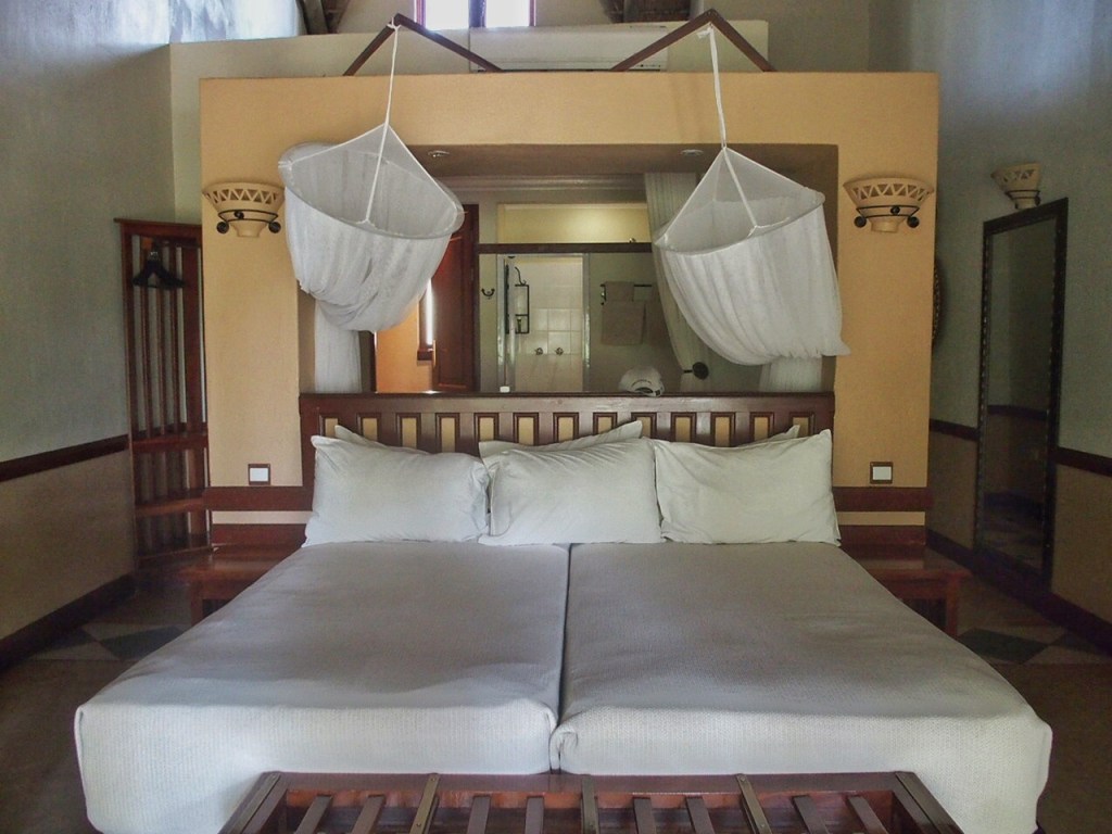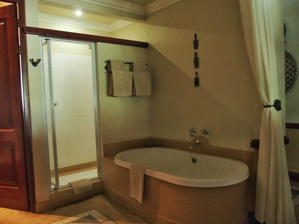 Our home base was the Chobe Safari Lodge in Kasane, another over the top Africa-themed lodge along the banks of the Chobe River. After baking for three days with no respite at Oddballs Camp, a plush air conditioned room was a welcome change. Andy booked us a 2 day package tour which included two morning overland game drives and two afternoon river boat safaris and meals. The meals were these elaborate over the top buffets.