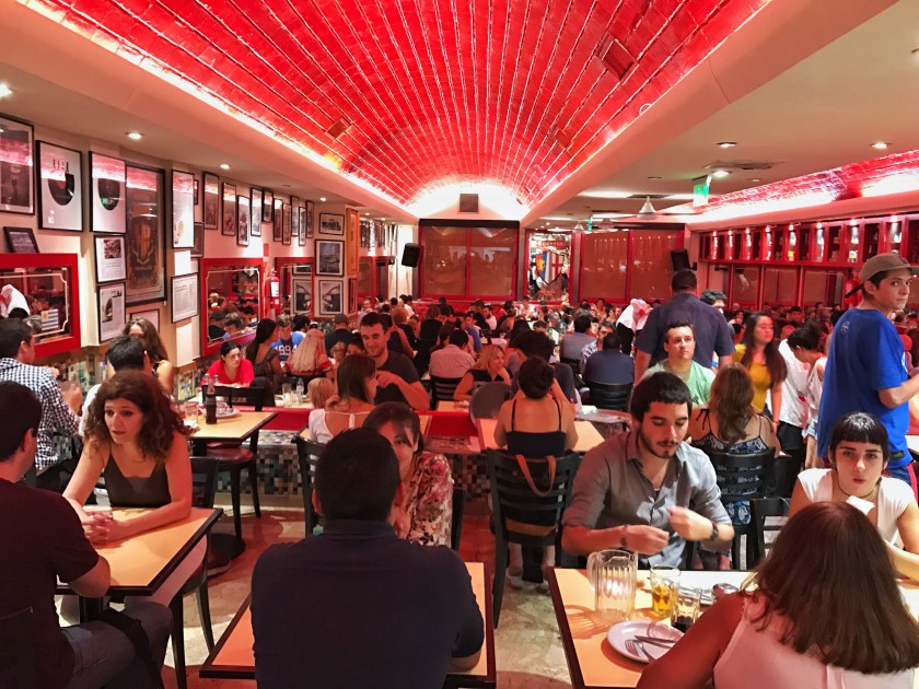 For dinner we went to Guerrin Pizzeria to try Argentine style pizza. Guerrin is consistently mentioned as one of the best pizzerias for this style of pizza. Unfortunately our cab driver gave us the run around by giving us the Gringo Tour when he decided to take a roundabout way to get to the pizza place by driving the complete opposite direction for about 2 miles before turning around. We eventually got to Guerrin and this was how packed the place was at 10pm.