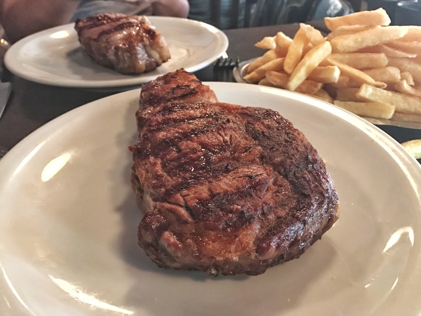 A few days later we had lunch at the aforementioned Don Julio. This place is popular with locals and is no longer a secret as the parrilla is getting more mentions in guidebooks, etc. Their menu isn’t as extensive as La Cabrera’s, focusing mostly on meats and sides. This time we both ordered the Bife de Chorizo. The steaks were excellent and cooked a perfect medium rare throughout. It was so good!!