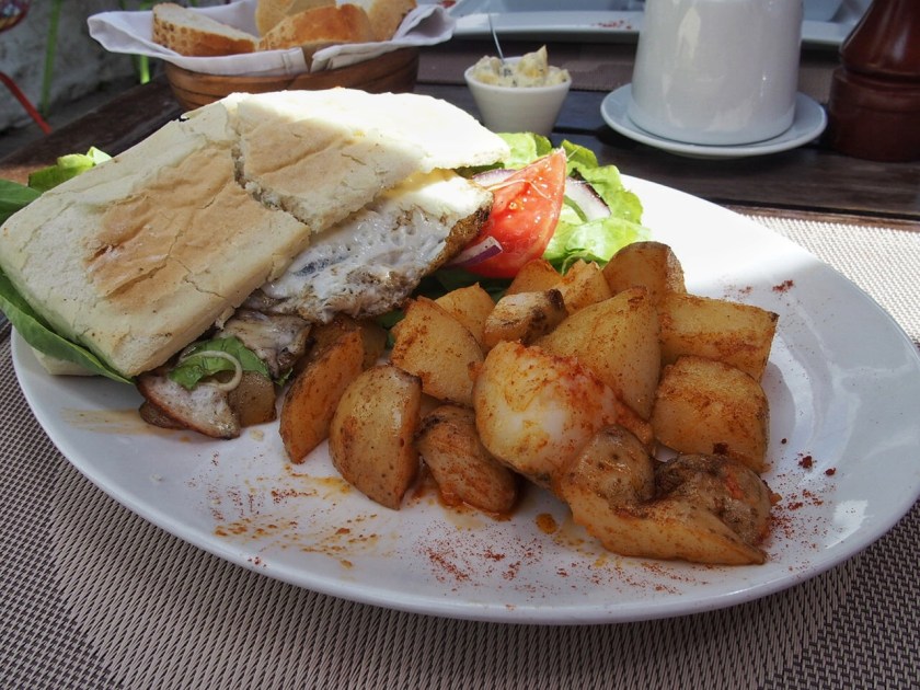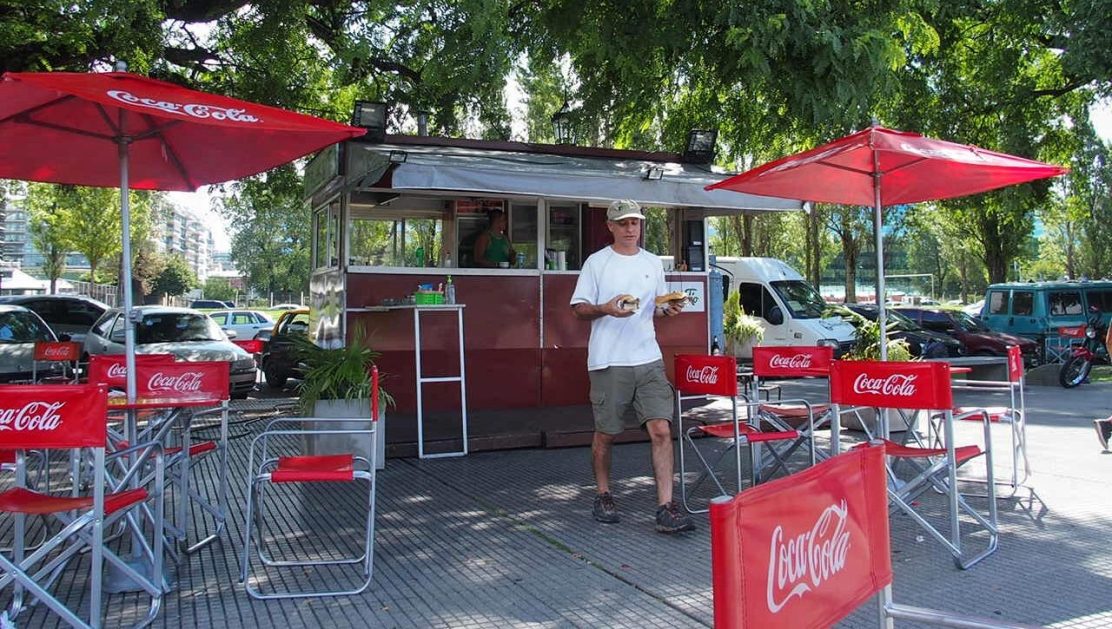 By the time we were done purchasing the tickets it was lunch time and we were famished from all the filling out of forms and stuff. D had read about a “food truck” area on a stretch of riverside called La Costanera not far from where we were. This is the best area to try some classic Argentine street food like choripan (sausage sandwich), bondiola (pork shoulder), churrasquito (grilled steak sandwich) and hamburguesa (BA’s version of a hamburger). The food stands (not really trucks) seemed to stretch along the entire riverfront and we became overwhelmed with all the choices. Based on a reco from the food blog site PickUpTheFork, we grabbed a couple of sandwiches from one stand called El Puestito del Tio. D got the bondiola and G got the churrasquito. The sandwiches were out of this world delicious. Both were outstanding. Maybe this will be our last meal in BA.