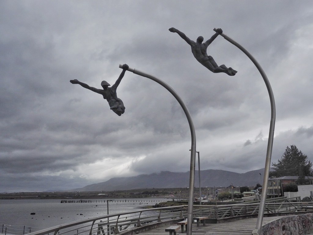 We went back to the hotel to pack our backpacks and to wait for Sally to arrive from Punta Arenas. By the time Sally showed up the clouds lifted and the sun was peeking out. When we went to the waterfront to check out the sunset we were amazed to see mountain peaks that were not there earlier. Wow, look at that there are mountains out there.