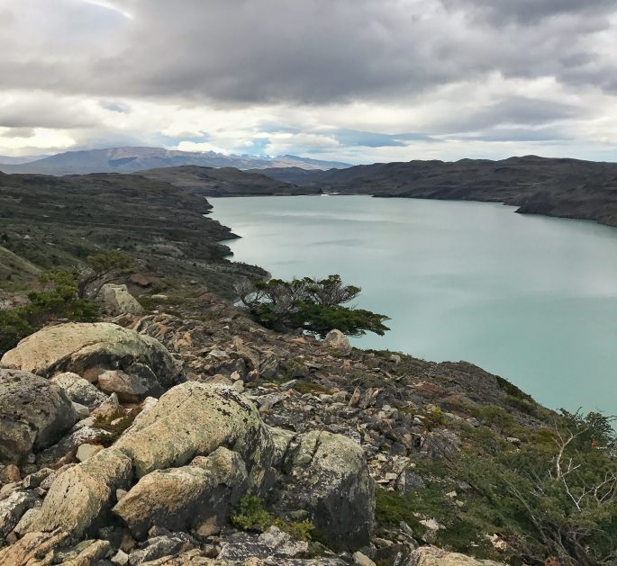 As we got closer to the lake and to our Refugio, we noticed waves of water rising and dancing across the lake. We continued hiking as we watched the strong winds whip up the water creating lines of white water and high spray. When the powerful gusts of wind slammed into us and almost knocked us over, we realized what we were just about to walk into. We had to brace ourselves against the side of the mountain and stop as the wind kept pushing us backwards. Yep we were finally experiencing the notorious Patagonia winds.