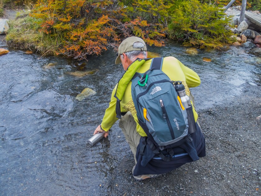 From the mirador, we followed the trail downhill and then through flat terrain until we reached a river, keeping a look out for the rare huemel, an endangered South Andean deer. Sally had spotted a huemel crossing the river in this exact area and we were hoping to see one as well. No such luck. We used the opportunity to fill our water bottles.