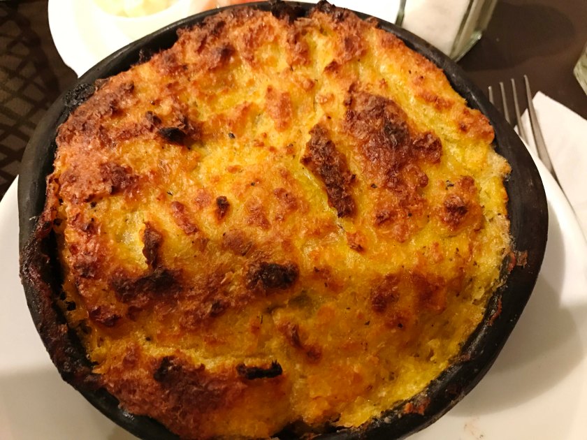 One of the restaurants recommended by Felipe for traditional Chilean dishes. G had porotos con longaniza (beans with mashed corn, pumpkin, basil, red pepper and pork sausages) and D had the pastel de choclo (corn pie made of mashed corn, grounded beef, onions, egg, chicken, black olives and raisins), a very popular and traditional dish in Chile. The porotos con longaniza was simple but good. The pastel de choclo was very rich but was luke warm.