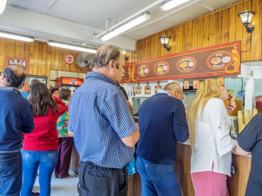 Place is only open during the day. We went here to try the famous pino empanadas (ground beef, onion, egg and raisins). Very savory and tasty. You order at the caja, get a receipt and show the receipt to an employee behind the counter who will then get your food. You eat standing up around marble tables or counters. It was crowded.