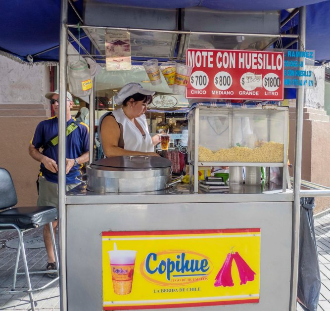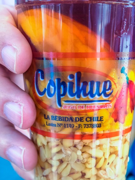 During the tour we watched a group of amazing street drummers called Chinchineros and a street performance of a couple dancing the Cueca (Chile’s National Dance). We tried a drink called Mote con Huesillo, a weird concoction consisting of wheat and peach slices and stopped for a Chilean pisco sour (G) and coffee (D) at a local cafe in the cutesy Barrio Lastarria.