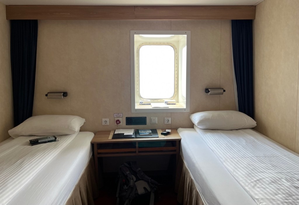 We were assigned cabin 307 towards the bow of the ship on the starboard (right) side. The cabin was not super fancy but nice and felt comfortable. We were surprised by how much storage was available. We were packed for two completely different trips and were still able to pack away all of our junk. No time to admire our organization, we had to attend a Safety Briefing and Lifeboat Drill followed by a Welcome Briefing.