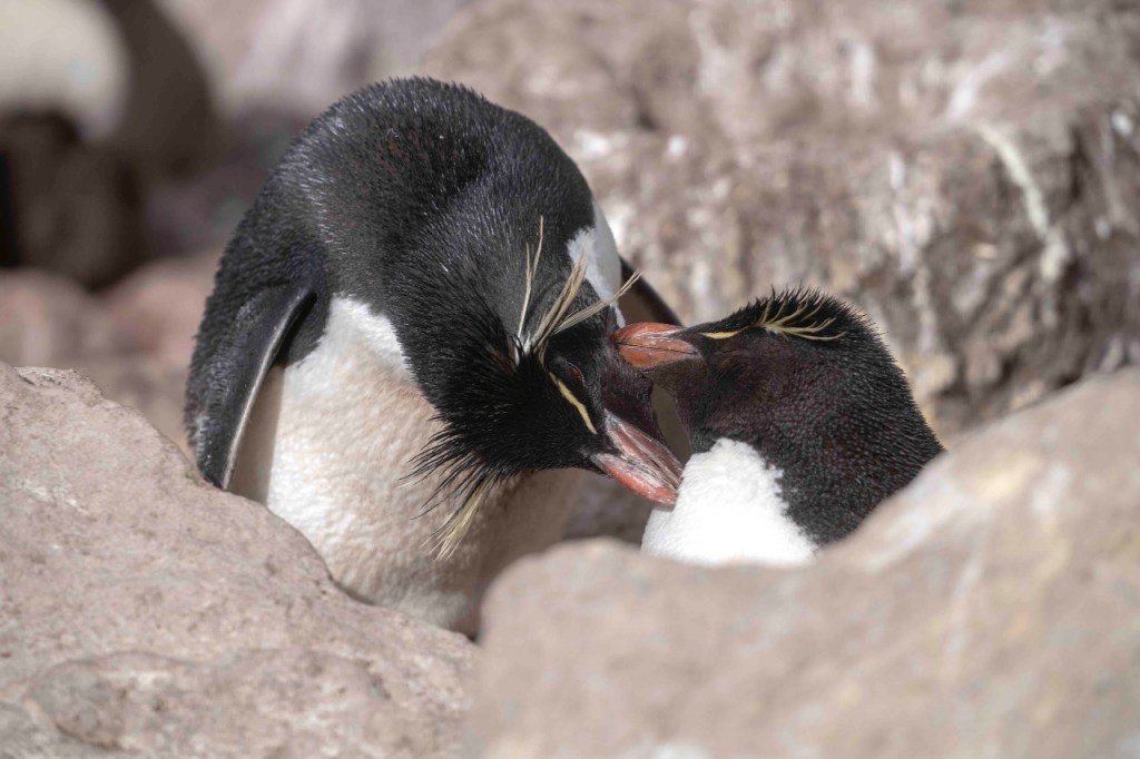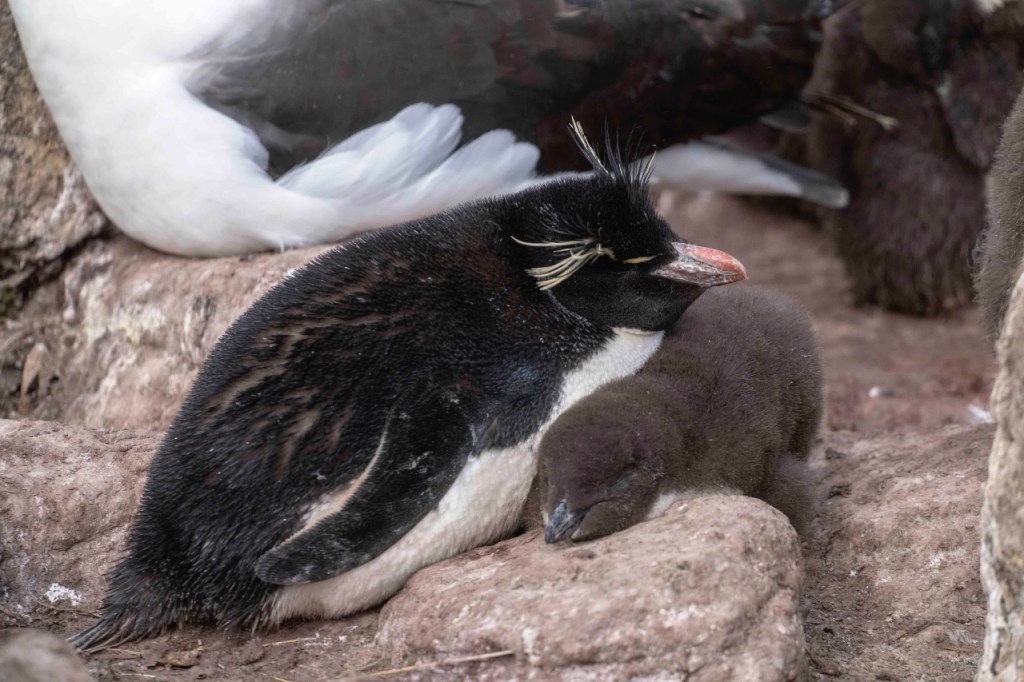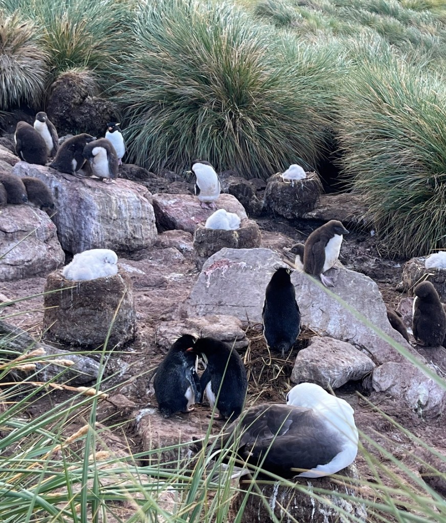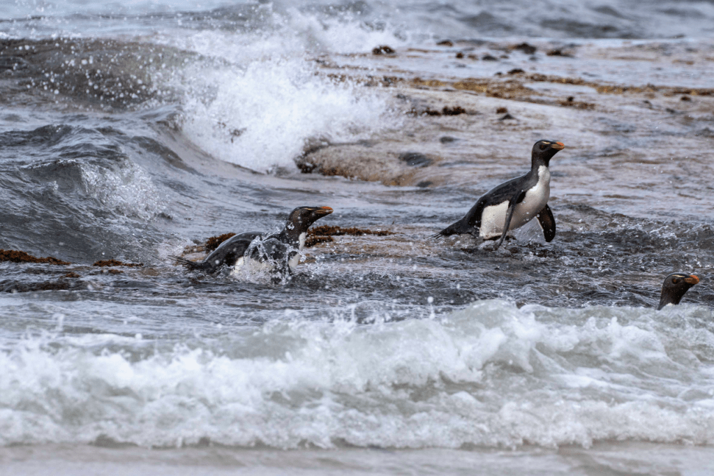 The scene on the lower slopes was where most of the action was happening. People there were ignoring the rockhoppers on shore and kept their attention out on the water. What they were looking for we weren’t sure until we saw a series of splashes.