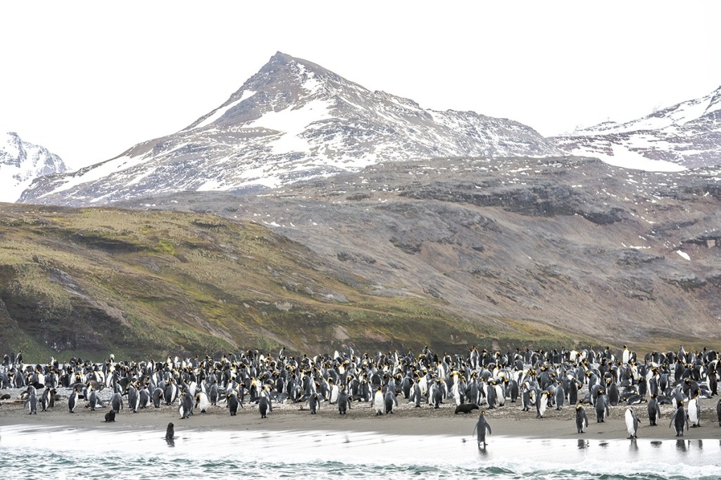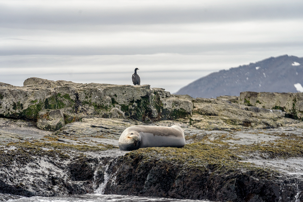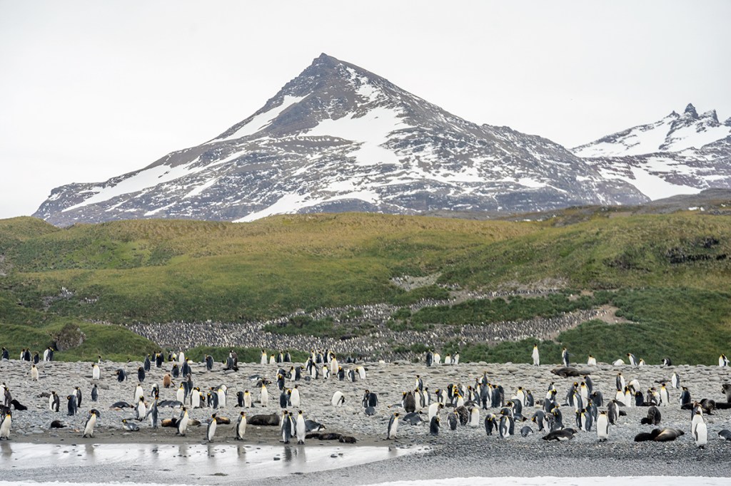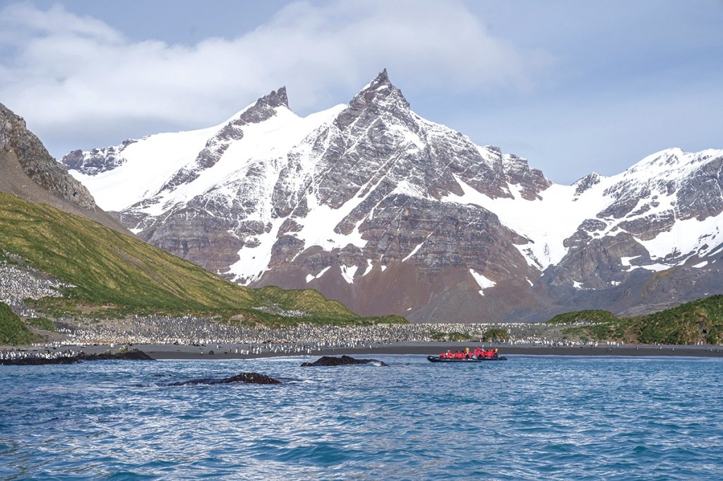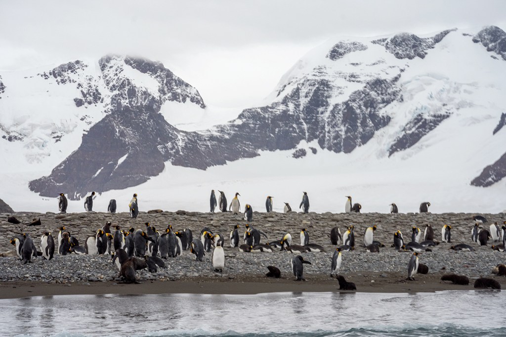 Approaching the shores of Salisbury Plain, where the Lucas glacier flowed down the mountain’s embrace, the landscape mirrored the enchantment of Right Whale Bay. Snow-kissed peaks, penguins adorning shores and hillsides, and the ubiquitous presence of fur and elephant seals.