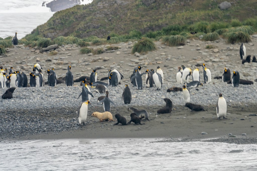 In the tapestry of South Georgia’s shores, we embarked on a leisurely exploration of the expansive shoreline adorned with hundreds of King Penguins, their fluffy progeny, and the ever-present fur and elephant seals.