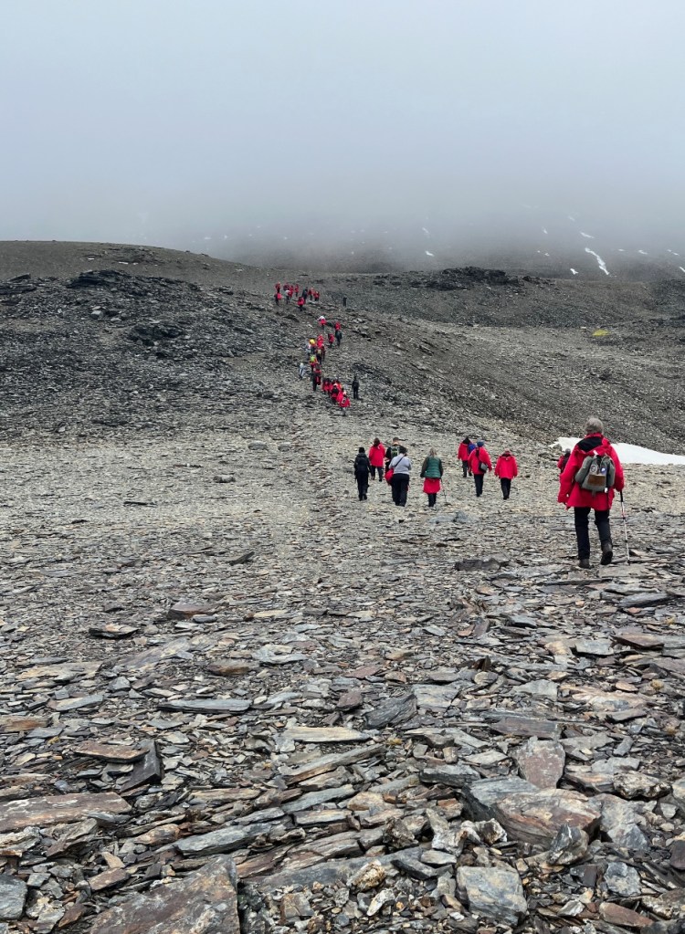 The plan was to drop off the hikers at Fortuna Bay. The ship would continue to Stromness with the remaining passengers, where the hikers would later meet the ship. It was a one-way hike, meaning no turning back, no ship waiting for us. The night before, Jonathan cautioned us that the hike was no joke. He threw around words like “strenuous”, “steep vertical climb” and “loose scree” making for a potentially challenging hike. If someone quits, the entire group goes back, and the ship has to turn around to pick us all up, wrecking everyone’s morning. Yikes, how’s that for pressure?