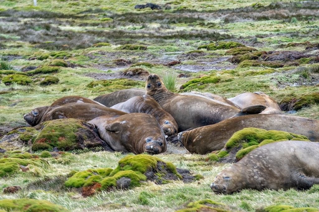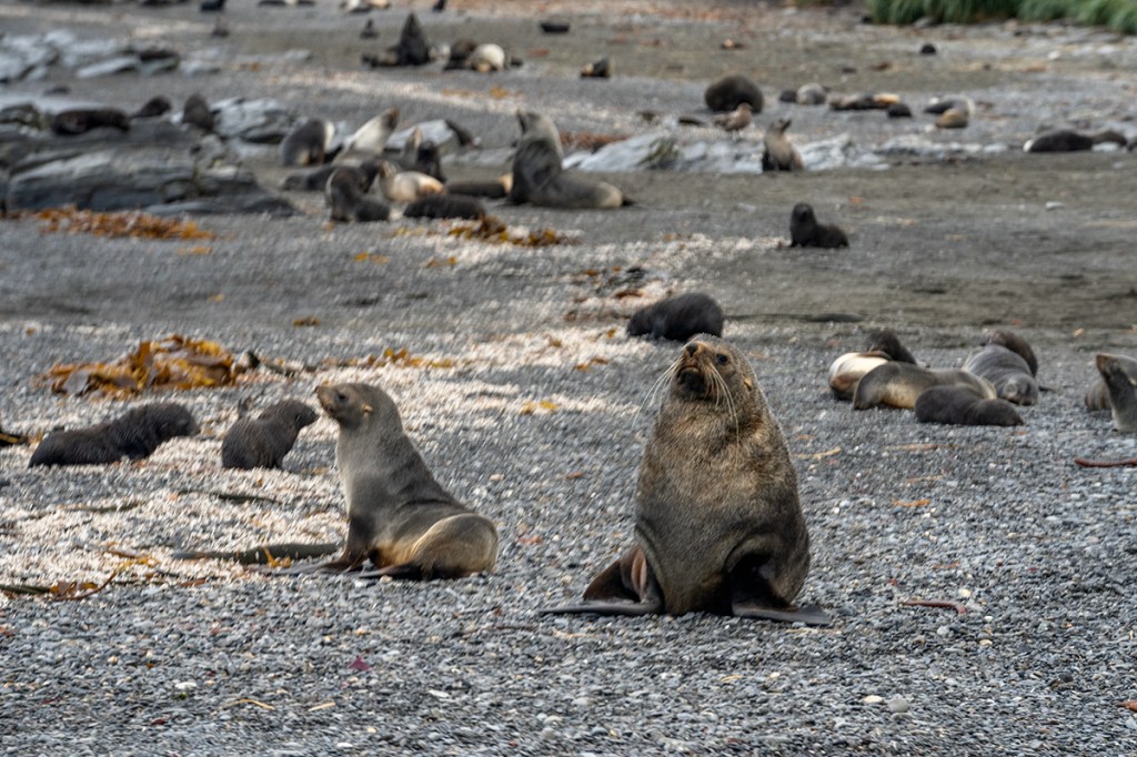On the way to the beach, we passed inquisitive Fur Seal pups, a sprawling blubber of Elephant Seals and a congregation of molting Kings who were holding court in a stream to cool off. Gus was even charged by a momma seal trying to protect its pup.