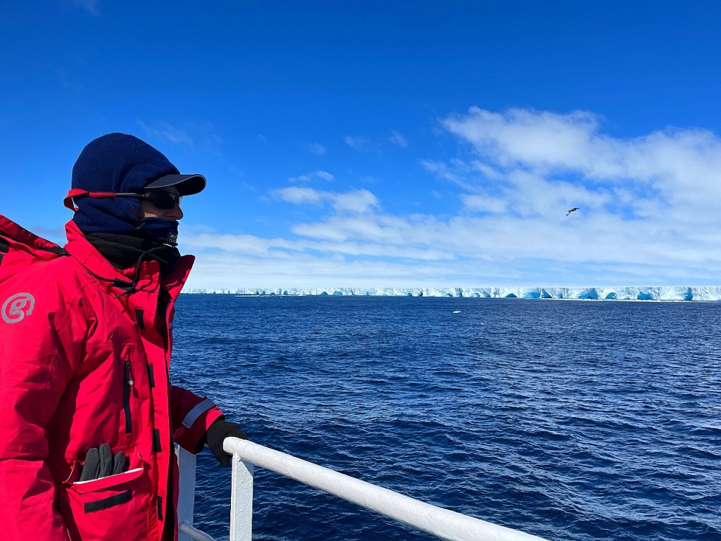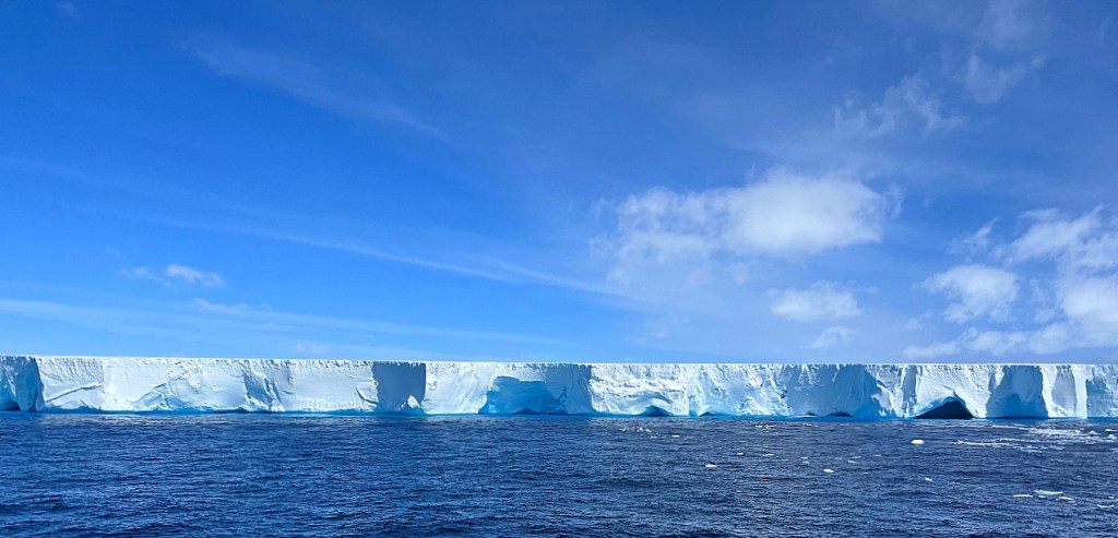 An incredible development, however, took us slightly off course. A rogue iceberg was coming our way and we were going to hit it. OK, that may have been a little dramatic. Actually, A23a, the largest iceberg in the world, was drifting in the area, and it was all engines full ahead to try to see it. This behemoth of an iceberg, the size of Rhode Island, broke off from Antarctica’s Filchner-Ronne ice shelf in 1986 and had been stuck in the Weddell Sea for over thirty years. Only recently, in late 2023, did it completely break free and started drifting toward the Southern Ocean.