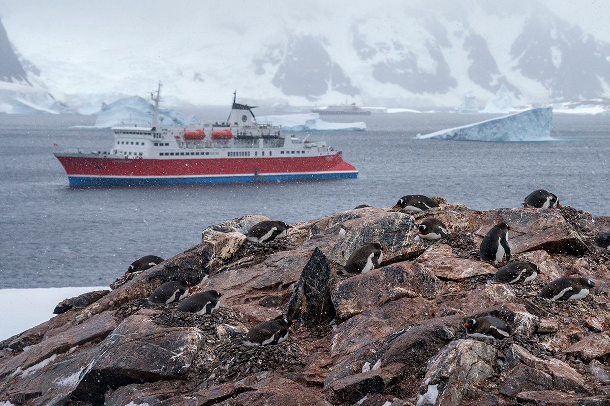 The driving winds pelted us with a mix of hail and penguin guano as we headed toward the Gentoo Penguin colony on Port Charcot, giving us our first real taste of Antarctic summers. Bundled up against 45-knot winds and sub-zero temperatures, we trudged through a foot of snow, battling the elements until we finally reached the colony.