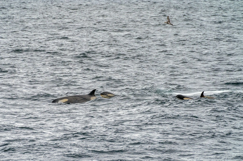 Jonathan’s voice boomed over the ship’s PA system yet again. This time, he interrupted our nap with news that orcas were nearby, sending us into a mad dash to the deck. We saw multiple pods, including a mother and calf swimming near the ship.